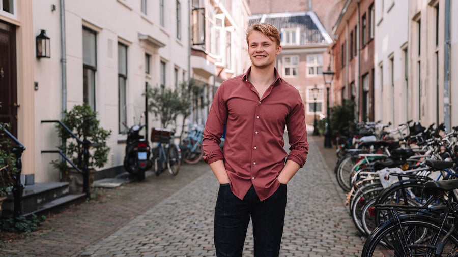 Oudroze overhemd met zeer subtiel ruitjespatroon van Michaelis met lichte knopen. Dit Michaelis overhemd heeft een rustige uitstraling. Daarmee is het heel geschikt om te dragen onder een pak, in combi met een spijkerbroek of onder een pullover. Het strijkvrije...