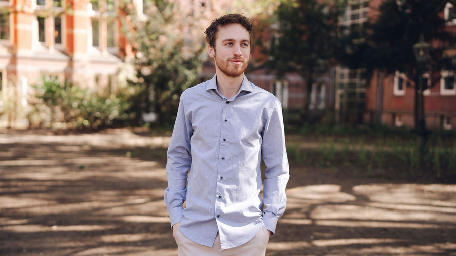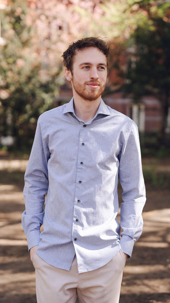 Blauw overhemd met microstructuur en subtiele print van Michaelis. Dit Michaelis overhemd heeft een rustige uitstraling. Daarmee is het heel geschikt om te dragen onder een pak, in combi met een spijkerbroek of onder een pullover. Het strijkvrije overhemd heeft...