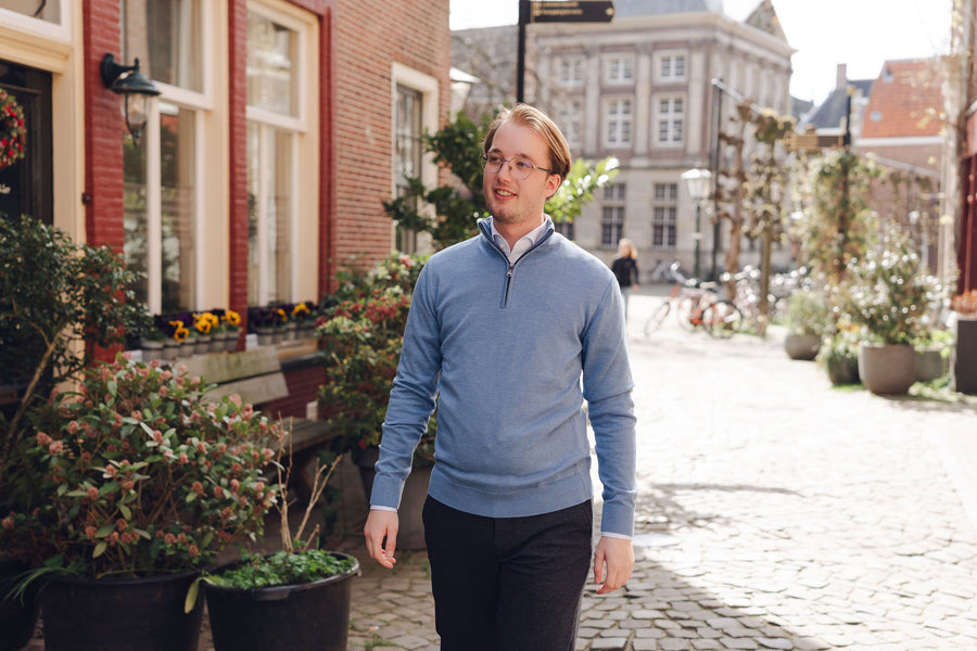 Lichtblauw overhemd met donkerblauwe kleur in de kraag van Michaelis in een fluweelzachte weving, luchtig en ademend. Geschikt voor zowel zakelijk als casual gebruik. Bevat mooi contrasterende donkere knopen. Het overhemd heeft een getailleerde pasvorm en bestaat voor 100% uit...
